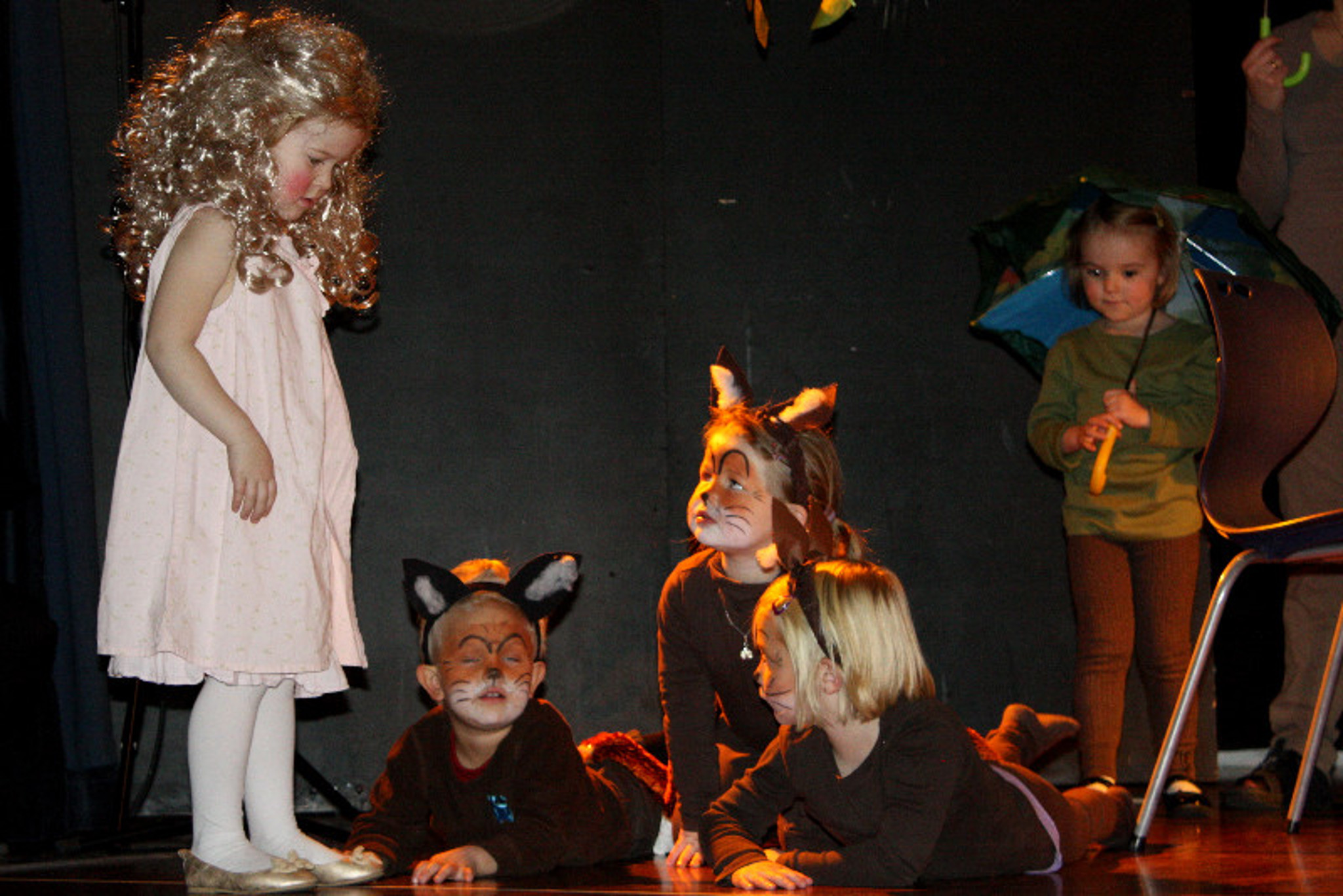 Forestillingen inneholdt i tillegg til dramatisering av «Gullhår og de tre bjørnene» og «Tante Monika, en rekke innslag basert på digitale prosesser. De eldste barna presenterte bla animasjonsfilmen «Dyreskogen», produsert med god hjelp av Rune Folgerø fra Kulturskolen. Tre- og fireåringene hadde laget animasjonsfilm om seg selv, mens toåringene presenterte filmen «Fotokunst» som viste tegning gjennom bruk av pc. De aller minste barna var representert gjennom en flott film som viste hverdagen på barnehagen.